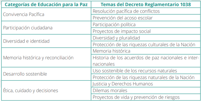 Nuestro colegio basa su proyecto de cátedra por la paz con la categoría CONVIVENCIA PACIFICA fundamentando los temas de: